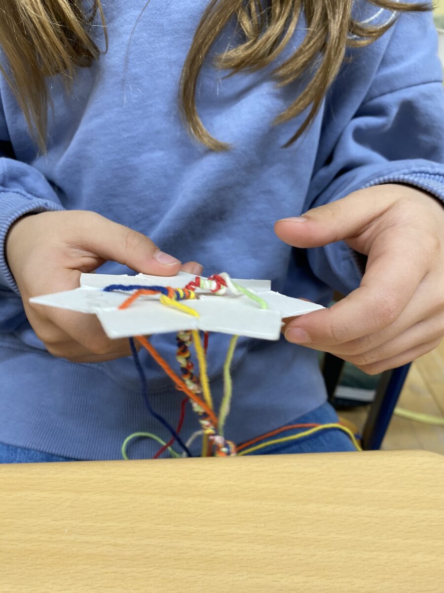 Im Anschluss zeigten die Schülerinnen und Schüler aus der vierten Klasse den Kindern aus der ersten Klasse, wie man ein Freundschaftsband knüpft. Die Stunde ging viel zu schnell zu Ende und alle wollen das Freundschaftsband fertigstellen.